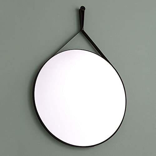 Kiamami Valentina SPECCHIO BAGNO DESIGN ROTONDO E CORNICE CON LACCIO IN PELLE NERA