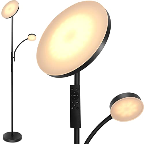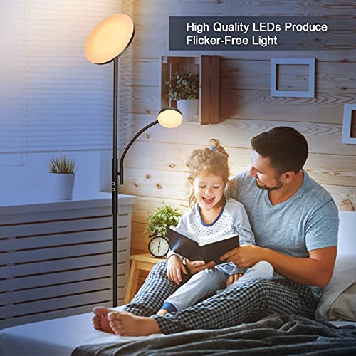 KIAMPON Lampada a Stelo LED Dimmerabile, 28W+5W Lampada da Pavimento in Metallo, Piantana Moderna con Luce da Lettura, Lampada da Terra 3000K-6000K con Controllo Toccare e Telecomando