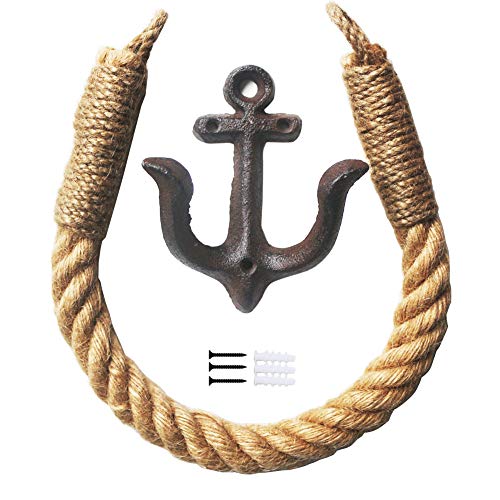 KiaoTime - Porta carta igienica in corda anticata da bagno, Tema della spiaggia dell'oceano con gancio di ancoraggio in metallo per spiaggia, decorazione da bagno