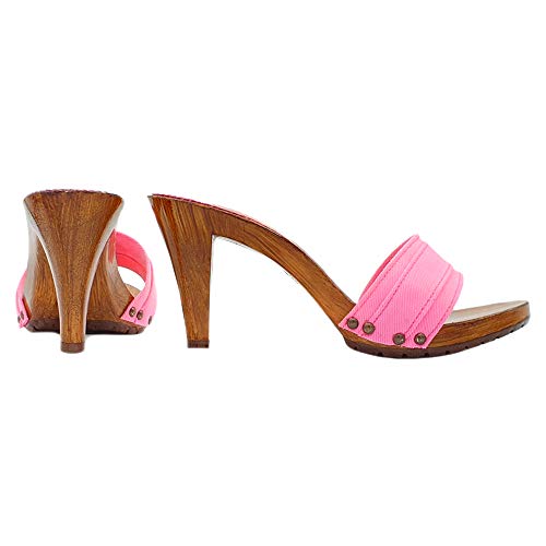 Kiara Shoes Mules da Donna con Tacco 9 Fascia in Tessuto Rosa - K6101 Fluo Pink (Rosa, 36)