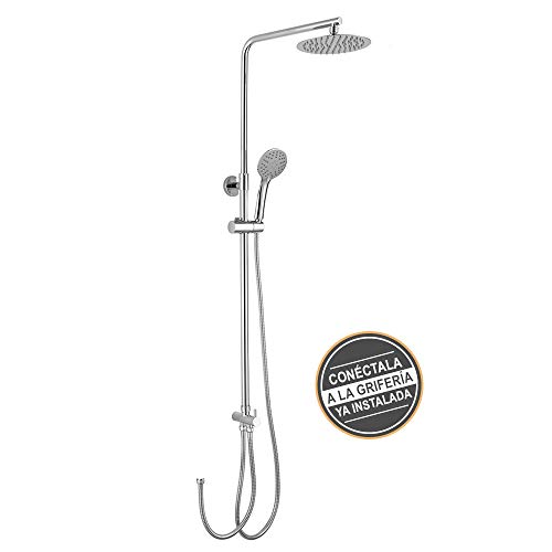 Compatibile con qualsiasi rubinetto standard della doccia. Assicurati che la nostra colonna senza rubinetti si adatta perfettamente al rubinetto della doccia che hai precedentemente installato nel tuo bagno. Il sistema si collega dal rubinetto alla doccia tramite il tubo flessibile da 60 cm senza problemi, mentre il deviatore ceramico incluso permette di scegliere di portare l'acqua allo spruzzatore superiore o alla doccia a mano