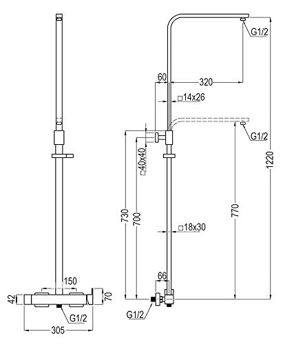 Kibath L435251 - Miscelatore monocomando per colonna doccia Combi Cherokee, cromato lucido
