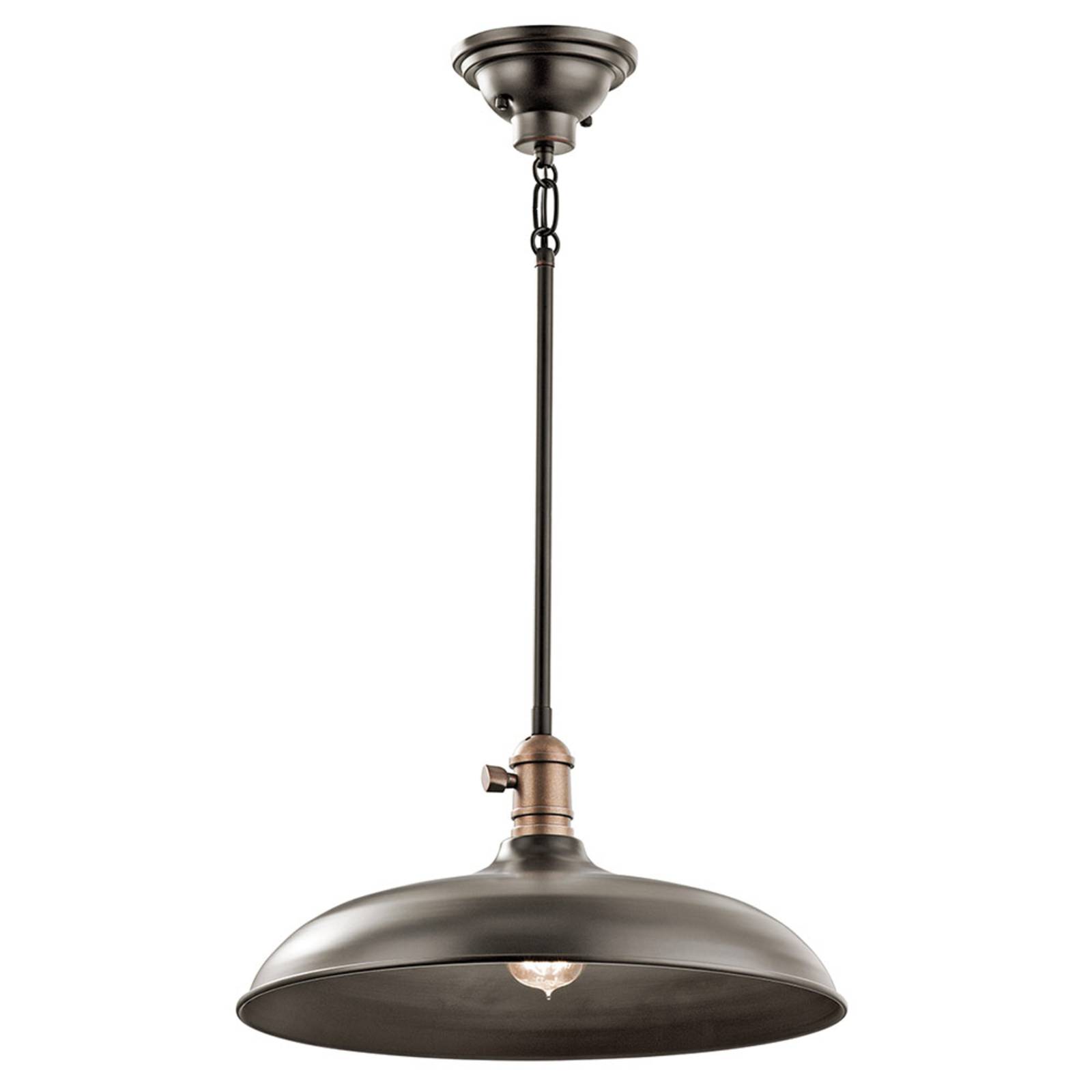 Lampada a sospensione di design industriale Cobson - bronzo antico I complementi d'arredo in stile industriale sono tornati di moda. La lampada a sospensione Cobson con il suo ulteriore look retrò si adatta esattamente a questo modello. È dotato di un paralume a forma di campana che, grazie alla sua larghezza, garantisce un'ampia diffusione della luce nella stanza. Cobson è ad esempio molto adatto per l'illuminazione di un tavolo, ma è anche raccomandato come illuminazione generale. Un'ulteriore caratteristica è rappresentata dalle varie opzioni di montaggio: Cobson può essere montato come apparecchio a sospensione o a soffitto con una distanza tra loro.