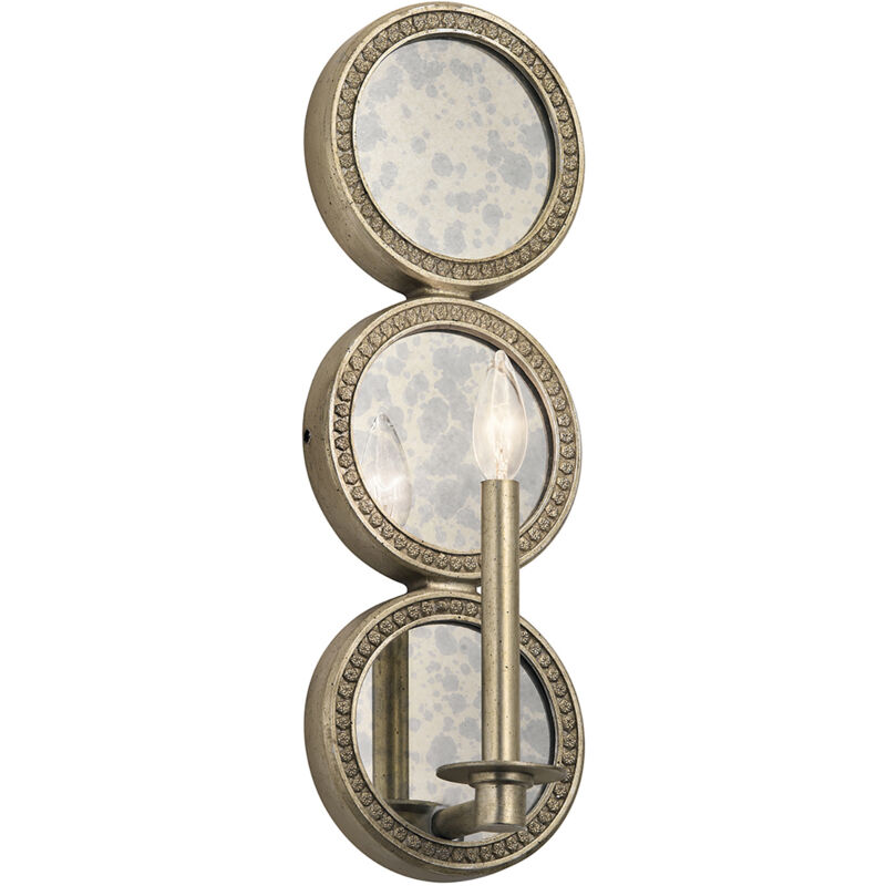 Collezione Rosalie STILE E RAFFINATEZZA Lampada da parete a 1 luce. L'accattivante collezione Rosalie emana stile e raffinatezza. Il design tradizionale e rivisitato di Williamsburg la rende un'aggiunta perfetta a qualsiasi ambiente. Presenta una finitura in oro Sterling, che è un'impressionante combinazione di toni d'argento e d'oro, insieme al vetro mercurio antico.