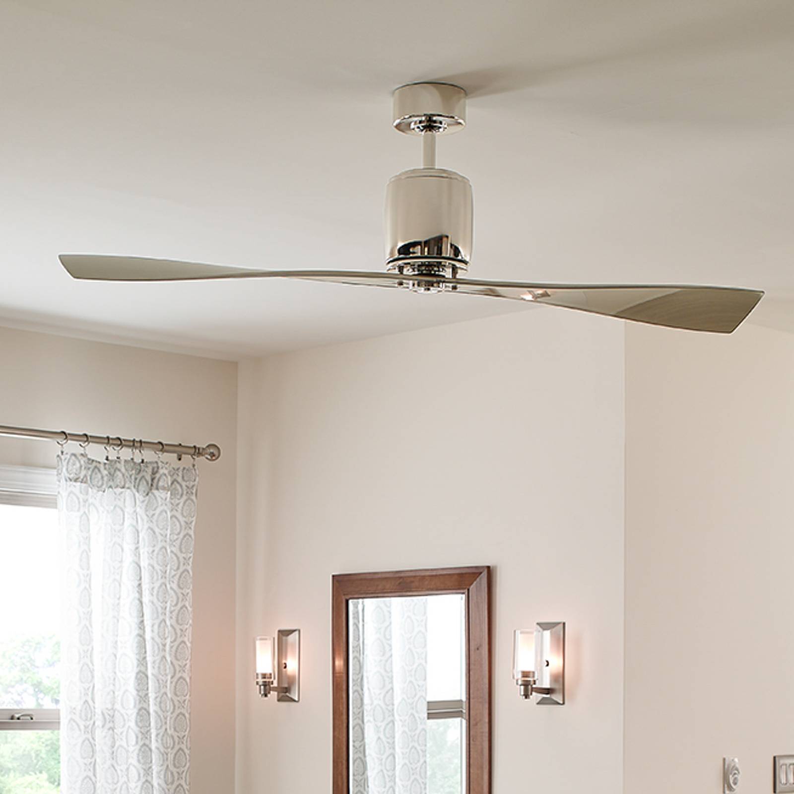 Ventilatore da soffitto a due ali Ferron per ambienti di grandi dimensioni Grazie all'ampio diametro, il ventilatore da soffitto Ferron, dal design discreto e con due lunghe ali in policarbonato, garantisce un'adeguata circolazione dell'aria anche in ambienti di dimensioni fino a 30 m². Ferron viene fornito con un telecomando. Funzioni Ferron si controlla comodamente tramite il telecomando in dotazione. È possibile impostare sei velocità, controllare a distanza la funzione di inversione e spegnere il motore tramite il telecomando. Dati tecnici - Motore a corrente continua: 32,4 watt - Velocità: min. 48 giri/min, max. 106 giri/min. - flusso d'aria circolante: 5.468 m³