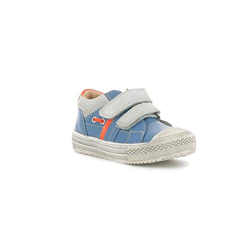Kickers Barista Low Top Sneaker per Bambini, con Chiusura in Velcro, Blu (Bleu Gris Orange), 33 EU