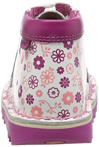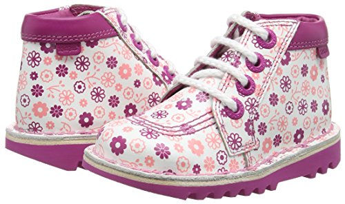 Kickers Kick Hi Ditsy Leather, Infant Grils, White/Dk Pink, Stivaletti Bambine e Ragazze