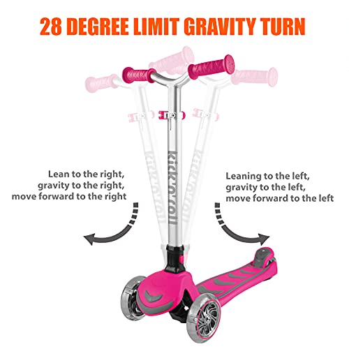 Kicknroll Monopattino per bambini, 4 monopattino regolabile in altezza e pieghevole, extra largo e antiscivolo, con 3 ruote lampeggianti a LED, supporto massimo 50 kg per 3-8 ragazzi e ragazze