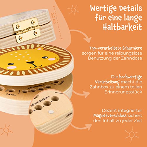 Regalo perfetto per la nascita: sia come regalo di battesimo o regalo per la nascita, la scatola per i denti con un messaggio fatina dei denti è una bella conservazione per tutti i bambini. 4 disegni disponibili: scatola per denti con pinguino, scatola per denti per bambini, leone, scatola per denti da latte
