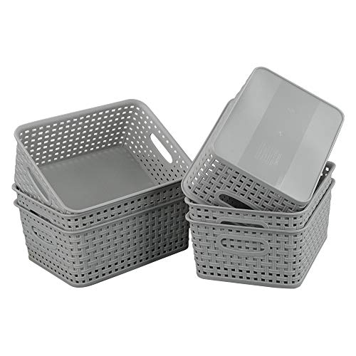 Kiddream Cestini Plastica Rettangolari, Set di 6 Cestino Portaoggetti Plastica, Grigio