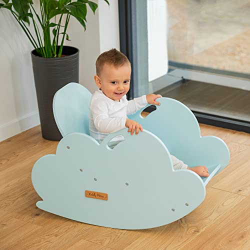 KiddyMoon Dondolo in Legno per Bambini Montessori Nube AR-002, Bianco