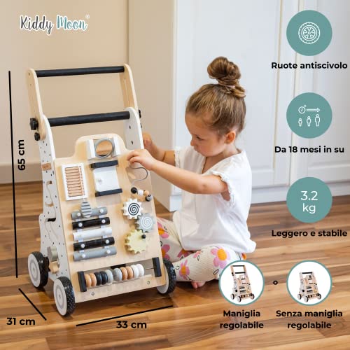KiddyMoon Girello Interattivo In Legno Per Bambini Multifunzione Primi Passi WK-001, Bianco-Nero