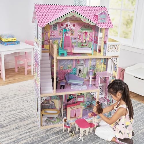 KidKraft 65079 Casa delle Bambole in Legno Annabelle per Bambole di 30 Cm con 17 Accessori Inclusi e 3 Livelli di Gioco