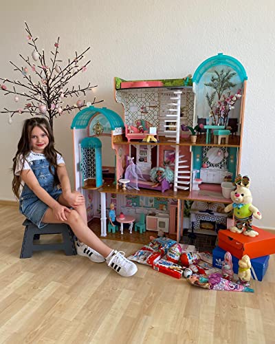 Casetta per le bambole esotica e festiva: include colori accesi, tetto a cupola trasparente e un ascensore funzionante