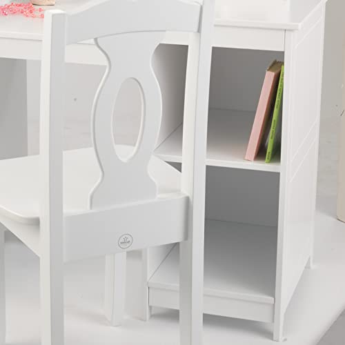 KidKraft Toeletta Deluxe Bianca con Specchio e Sedia in Legno per Bambini, Tavolo Toilette da Trucco a Scomparto con Ripiani, Postazione Trucco, Mobili per Cameretta per Bambini, 13018