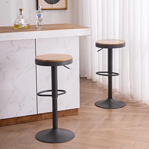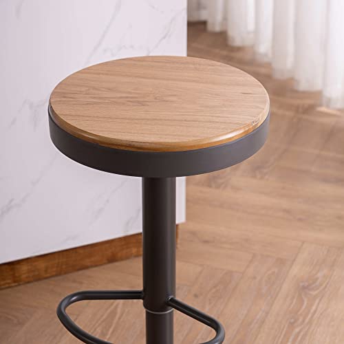 Kidol & Shellder Sgabelli da Bar Set di 2 Grigio, Legno Massello, Sgabelli Alto Cucina Bancone Regolabili in Altezza, Metallo Base Facile da Montare, Vintage Industriale Moderno