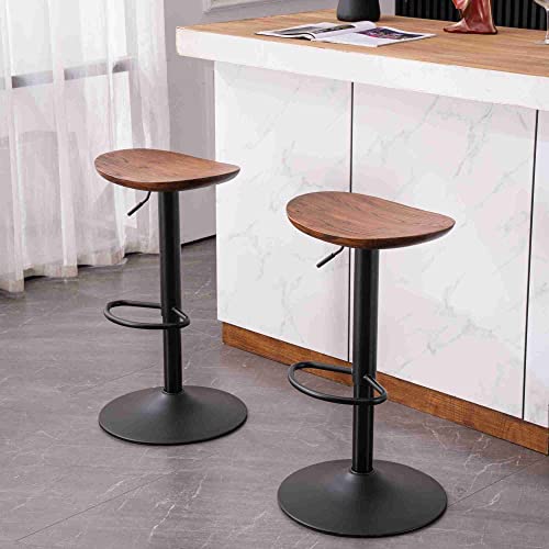 Kidol & Shellder Sgabelli da Bar Set di 2 Marrone Scuro, Legno Massello, Sgabelli Alto Cucina Bancone Regolabili in Altezza, Metallo Base Facile da Montare, Vintage Industriale Moderno