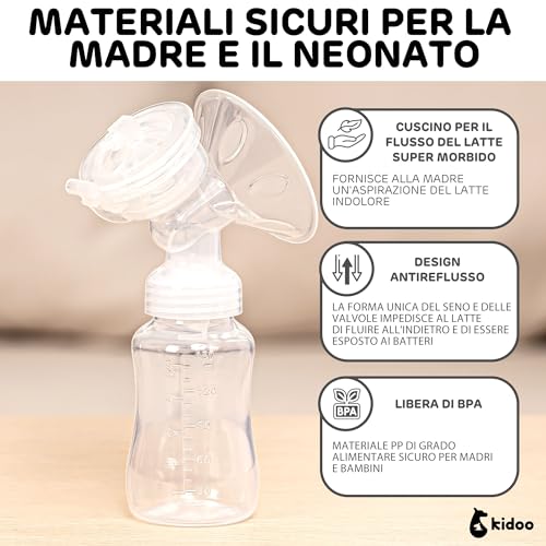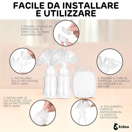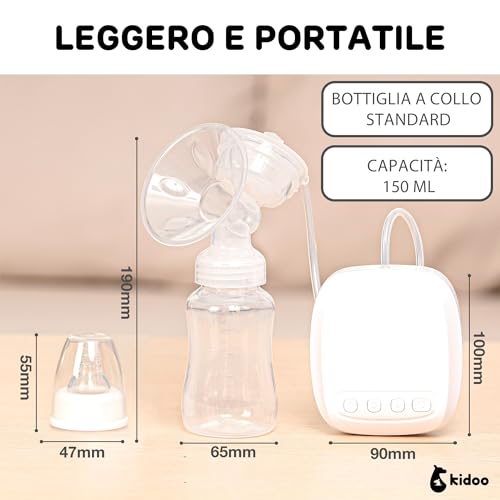 Kidoo - Tiralatte Elettrico per Un'estrazione Dolce, Più Latte in Meno Tempo - Funziona solo Collegato - Anti-reflusso - Include Biberon | Portatile - Super Silenzioso - Porta USB (Bianco)