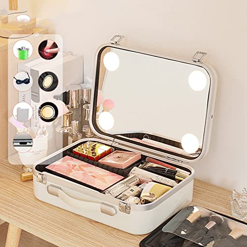 Kidozz Scatola organizer per trucco con luce a LED Touch Mirror da viaggio portatile per cosmetici multiuso custodia per gioielli (colore: bianco crema)