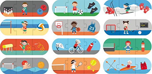 Puzzle modello sportivo e suoi accessori, ideale per i bambini per imparare gli sport e gli oggetti necessari per esercitarli