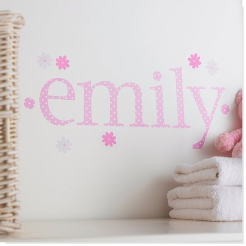 Kidscapes - Adesivo da parete personalizzabile con nome, rosa, altezza 10-16 cm, Ogni lettera è accompagnata da due adesivi con fiore separati, rosa, Lettera minuscola custodia "l"