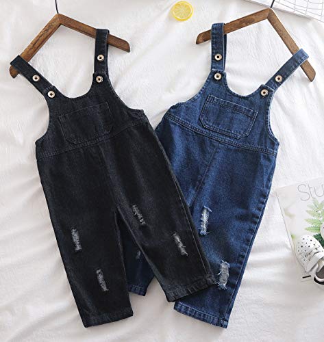 KIDSCOOL SPACE Salopette di Jeans Arruffata con Lettera Strappata e Tasca Grande con Bavaglino per Bebè e Bambine,Nero,2-3 Anni
