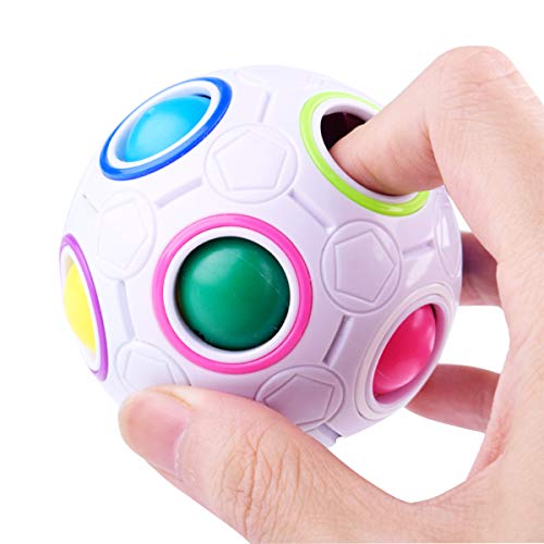 【Pallone arcobaleno portatile】: giocattolo speciale con design calcistico, design compatto e sensazione di morbidezza, le palline possono essere spostate usando il foro vuoto. Il cubo magico arcobaleno è di piccole dimensioni, leggero e di bell'aspetto. Può essere tenuto in una mano ed è facile da trasportare.