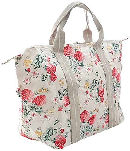 Cath Kidston Wild Strawberry - Borsa per la notte e borsa a tracolla pieghevole in lino, colore: Bianco