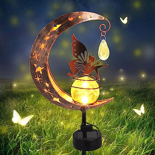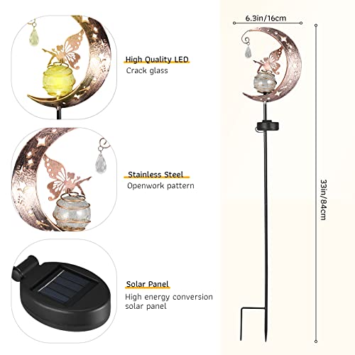 Kieyeeno Luce Solare da Esterno, 84 cm Luna in Metallo Lampada Solare a LED, Luce Segnapasso Impermeabile con Fata dei Fiori e Sfera di Vetro per Prato Cortile