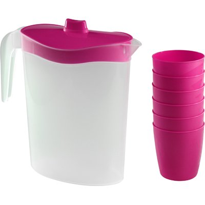 Kigima pentole brocca di Succo 2,5l con Coperchio e 6 Bicchiere 0,3l di Colore Casuale
