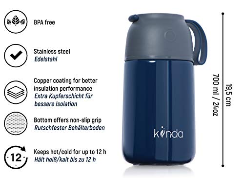 Kiinda Contenitore per Alimenti Termico Isolante in Acciaio Inossidabile - 700ml | Senza BPA | per Cibi Caldi/Freddi - Tazza e Contenitore per Il Viaggio, Campeggio ed Escursioni