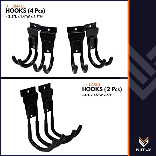 KIITLY | Confezione da 14 ganci e ganci dogati - Multi misure e accessori per lavagna a doghe resistenti e 2 cinghie regolabili per garage, appendere, display, stoccaggio e organizzazione