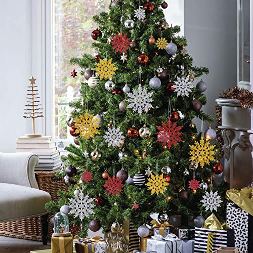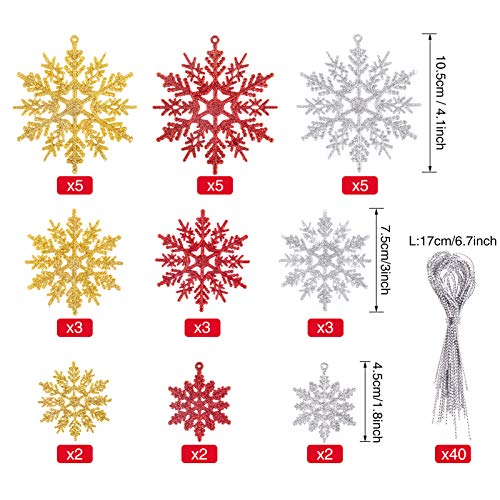 Molteplici Dimensioni e Colori - Questo set di decorazioni albero di natale fiocco di neve include 3 diverse dimensioni di fiocchi di neve in rosso, oro, argento che decorano la tua casa con più vividezza e senso.