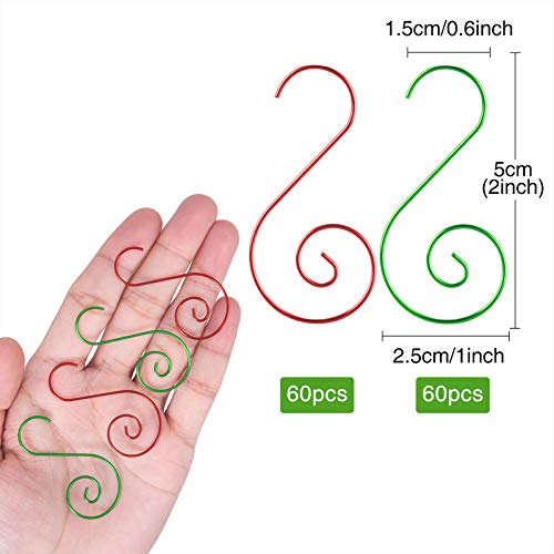 Kiiwah 120 Pezzi Ganci per Ornamenti Natale, Hooks a S Forma in Acciaio Inossidabile per Palline di Natale Appese e Decorazioni per Alberi di Natale (Rosso & Verde)