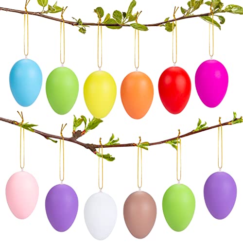 Kiiwah 12 Pezzi Uova di Pasqua Decorazioni, Uova Finte Pasquali di Plastica da Appendere con La Corda per Pittura di Artigianato Fai da Te di Pasqua e Regalo (Multicolore)