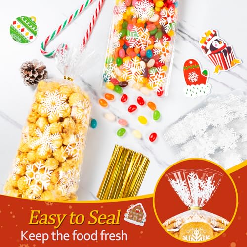 Design Raffinato - Avvolgi il tuo cibo e i tuoi regali con questi bustine trasparenti per caramelle e etichette di carta con elementi natalizi per renderli delicati e aggiungere atmosfera natalizia.