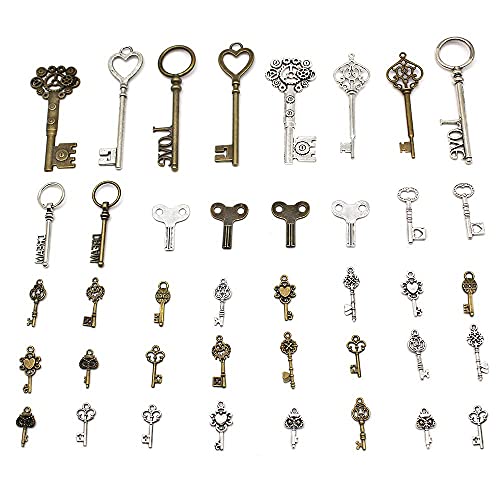 KiKiHong 40 Pezzi Bronzo Antico Scheletro Chiave Ciondoli Steampunk Misto Chiavi per la Creazione di Gioielli