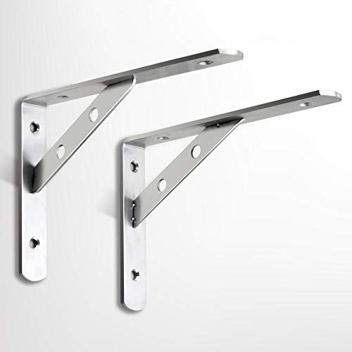 KiKiHong 2 Pcs Supporto per Mensole Pesanti in Acciaio Inox Staffe per Mensole Angolari Supporti Supporto a Parete Scaffale con Viti, Argento (105X150 mm)