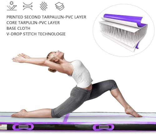 Qualità premium: il tappetino tumbling è realizzato in materiale double face (noto anche come "punto a goccia") e un telo in PVC standard da 0,9 mm. Migliore tenuta dell'aria e durata, quindi la tenuta dell'aria e la durata del tappetino air tumbling track sono migliorati.
