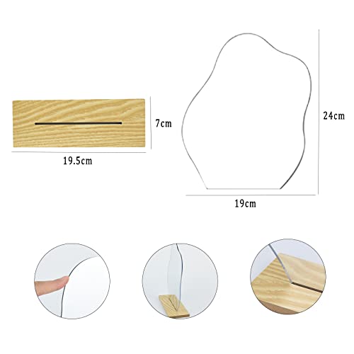 Kikuo Acrilico Specchio Irregolare, Senza Cornice Specchio Cosmetico, Laterale Singolo Irregular Mirror, Wavy Mirror con la Base di Legno, per Soggiorno e Aesthetic Room Decor