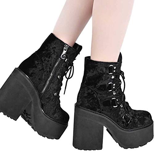 Killstar Broom Rider - Stivali con plateau, in velluto, Nero, 36 EU