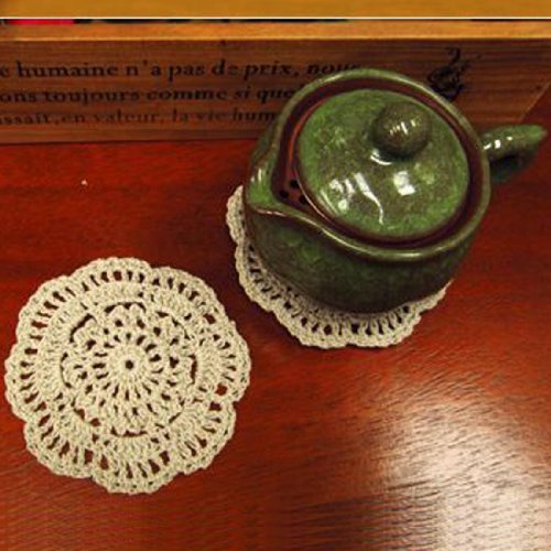 Piccola forma rotonda con motivo in pizzo lavorato a maglia, ottimi sottobicchieri per tazze, bicchieri o altri oggetti da tavolo