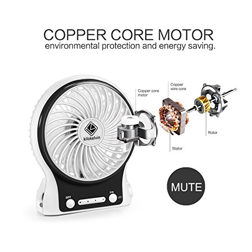 Kilokelvin Mini Piccolo Ventilatore Portatile USB Silenzioso Ventola Alimentatore pc e 3 Modalit di Velocit del Vento Regolabile con 18650 Batteria PC/Notebook(Nero)