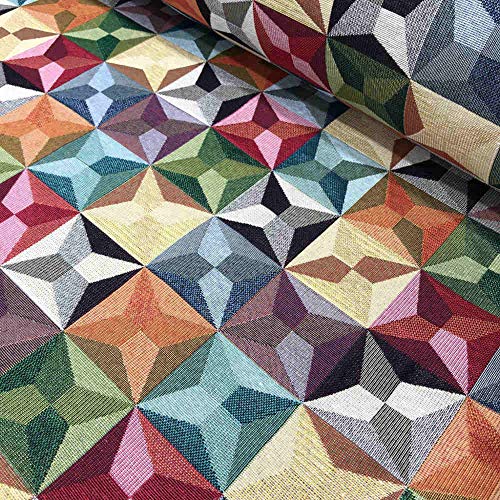 Kt KILOtela - Tessuto arredo al Metro - Gobelin - Tappezzeria - 280 cm di Larghezza - Prezzo per 50 cm | Stelle - Rosso, Verde, Giallo, Arancione, Nero