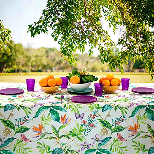 Kt KILOtela - Tessuto arredo stampato al metro - Canvas - 280 cm di larghezza - prezzo per 70 cm | Fiori tropicali - Bianco, Verde, Arancione, Lilla