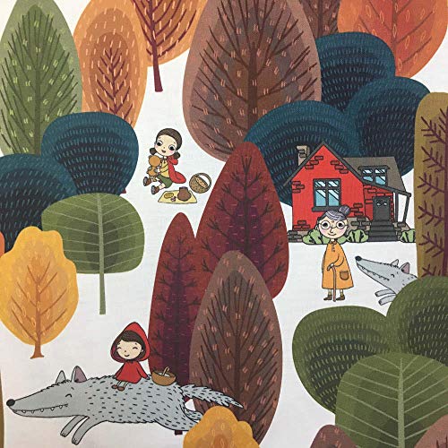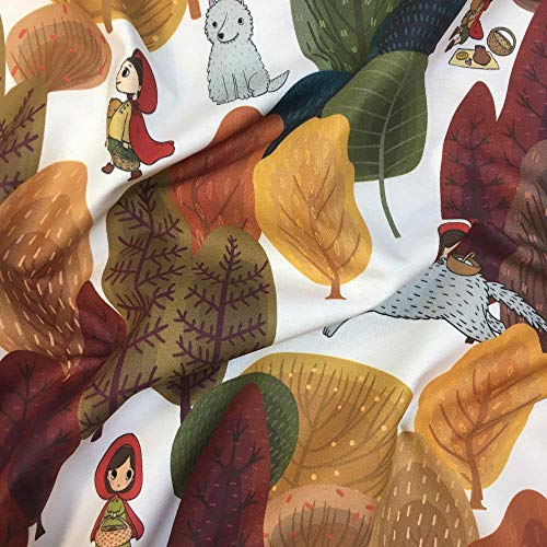 Kt KILOtela - Tessuto arredo stampato al metro - Half Panama stampa digitale - 100% cotone - 280 cm larghezza - prezzo per 60 cm | Cappuccetto Rosso in autunno