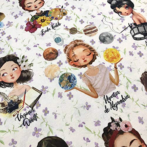 Kt KILOtela - Tessuto Arredo Stampato al Metro, Half Panama Stampa Digitale Cotone, Rivestire, Foderare, Divani, Tavolo, Sedia, Letto, Tende, Cuscini, Borse, Portafogli, 280 cm Altezza, Girl Power