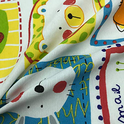 Kt KILOtela - Tessuto Arredo Stampato al Metro, Rivestire, Foderare, Divani, Tavolo, Sedia, Letto, Tende, Cuscini, 280 cm Altezza, Prezzo per 50 cm, Bambini, Animali, Multicolore, Bianco