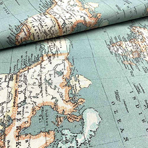 Kt KILOtela - Tessuto Arredo Stampato, Rivestire, Foderare, Divani, Tavolo, Sedia, Letto, Tende, Cuscini, Borse, Portafogli, 300 cm Lunghezza x 280 cm Altezza, Mappa del Mondo, Blu - 3 metro