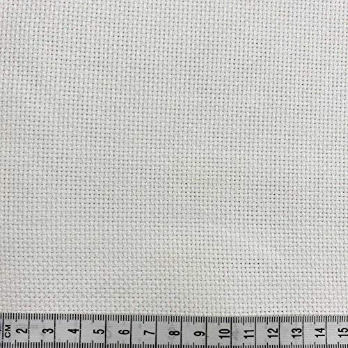 Kt KILOtela - Tessuto Panama per Punto Croce, Tessuto Aida Cotone, 5,5 Punti/cm, 14 Perline, 100 cm Lunghezza x 150 cm Larghezza, Bianco - 1 Metro